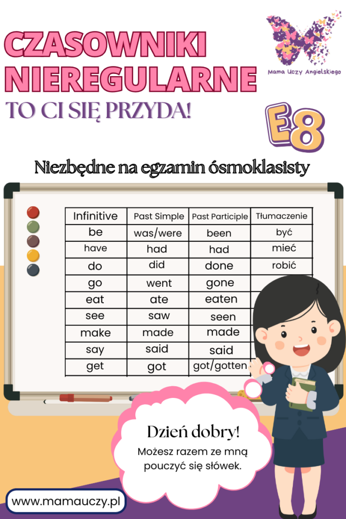 Czasowniki nieregularne w języku angielskim to jeden z najważniejszych elementów na egzaminie ósmoklasisty 🏫.